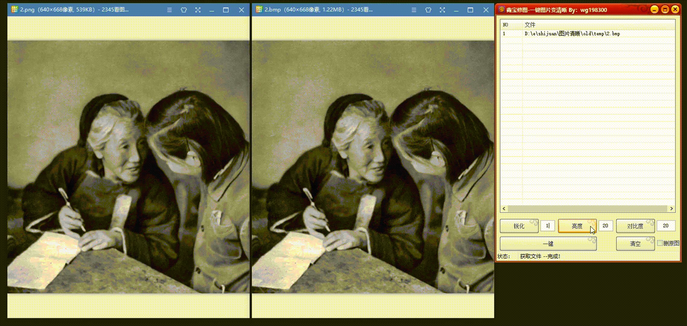 举个栗子:修复20张图,调整锐化和对比度,无需调整亮度,保留原图