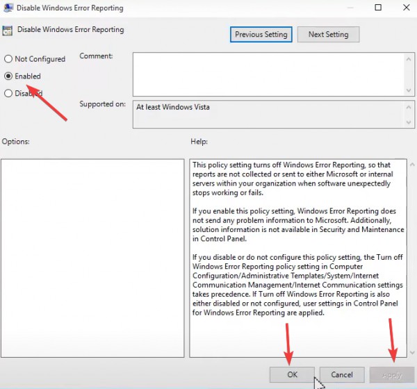 我们在使用win11系统的时候,有时候会弹出是否发送错误报告的弹窗,十分的影响使用,不少用户想要将错误报告服务关闭,但是不知道怎么操作,有三种方法能够将此服务禁用,那么接下来纯净之家小编就来分享具体的操作步骤,希望今日的win11教程可以给广大用户们带来帮助。 win11禁用错误报告服务教程: 方法一、通过服务窗口 1、使用热键Windows + R打开运行对话框,然后键入services.msc并按 Enter 或 OK 按钮。  2、在服务窗口中,右键单击右窗格中的Windows 错误报告服务,然后选择属性 。  3、单击常规选项卡。从启动类型部分的下拉菜单中,选择禁用,单击服务状态部分下的停止,然后单击应用确定。  4、重新启动您的电脑。 方法二、使用注册表编辑器 1、再次启动运行对话框 (Windows + R)。 2、输入 regedit 并点击 OK 按钮或点击 enter。  3、将此路径粘贴到导航栏中: HKEY_LOCAL_MACHINESOFTWAREMicrosoftWindowsWindows 错误报告  4、右键单击Windows 错误报告文件夹,从上下文菜单中选择新建,然后选择 DWORD(32 位)。  5、将新创建的文件命名为Disabled。 6、将Disabled的值更改为 1,然后单击 OK。  7、重新启动计算机。 方法三、使用组策略编辑器 1、再次打开运行对话框。 2、输入gpedit.msc并点击 OK 按钮或单击 enter。  3、导航到计算机配置/管理模板/Windows 组件/Windows 错误报告。  4、在右侧窗格中,双击禁用 Windows 错误报告。  5、在禁用 Windows 错误报告窗口中,选择启用单选按钮,单击应用和确定。  6、重新启动计算机。 以上就是win11怎么关闭错误报告服务?win11禁用错误报告服务的方法的全部内容,望能这篇win11怎么关闭错误报告服务?win11禁用错误报告服务的方法可以帮助您解决问题,能够解决大家的实际问题是软件自学网一直努力的方向和目标。 |