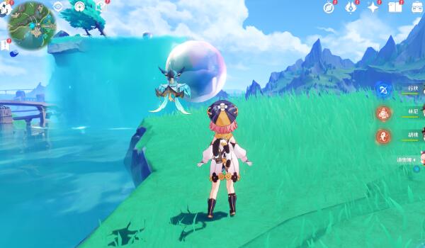 4、最后来到河边上可以见到一个水球飘在空中。