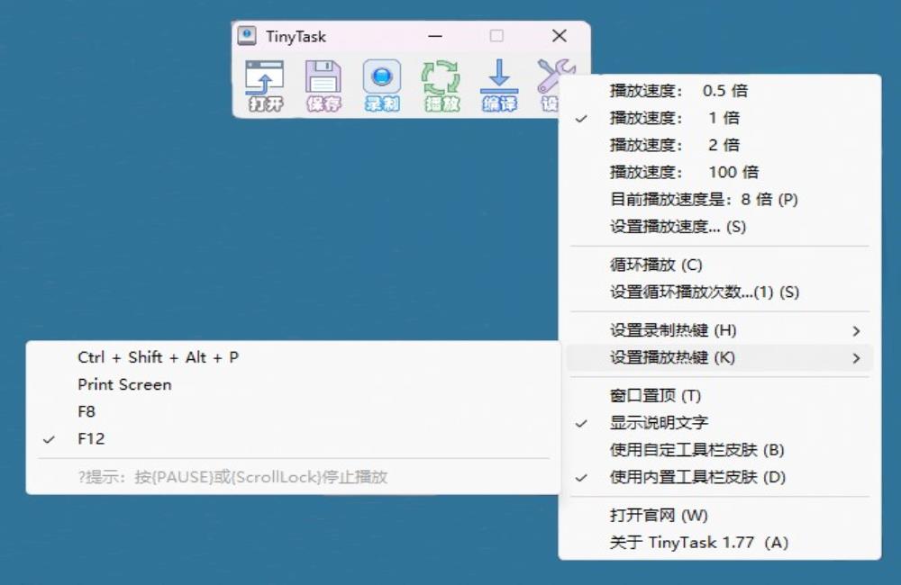软件下载:TinyTask-录制电脑操作工具(提取码:9009)