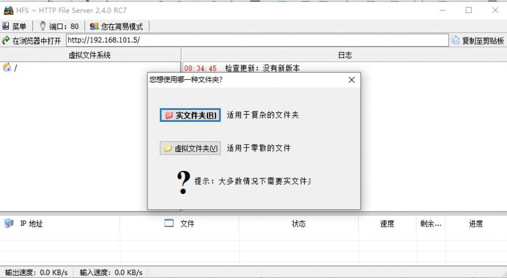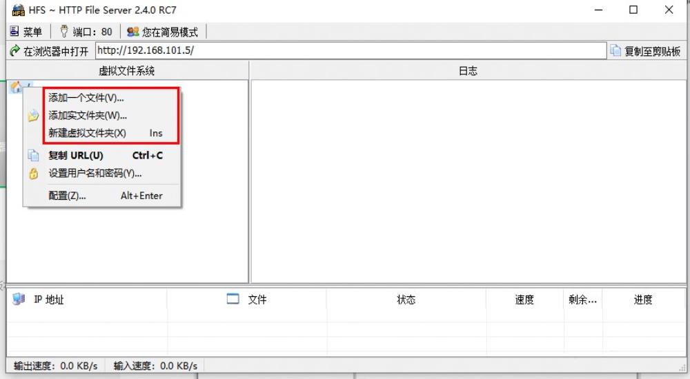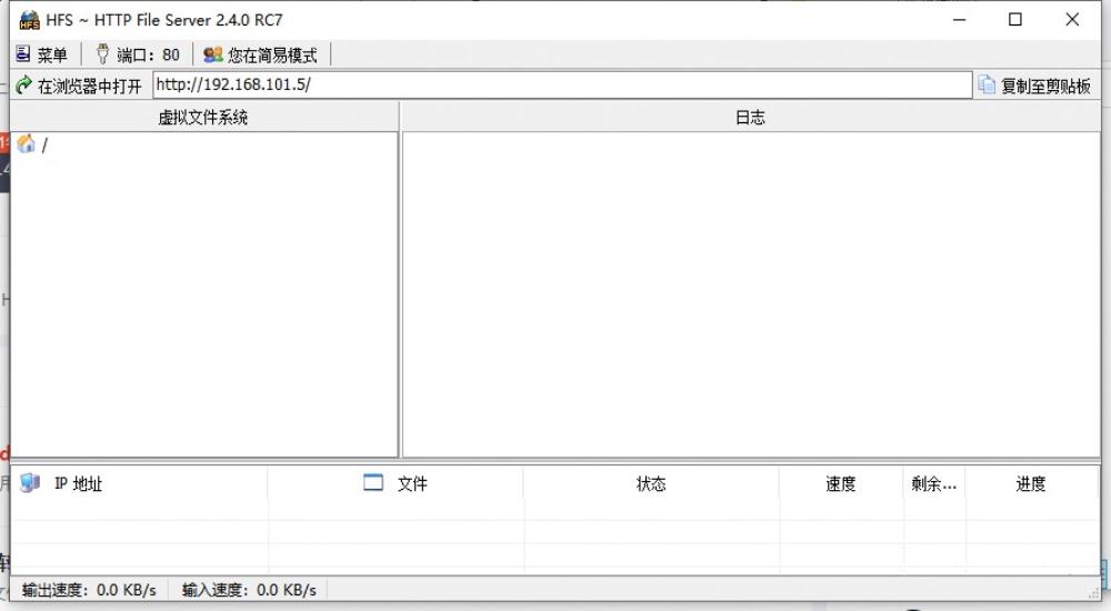 启动hfs应用。打开hfs应用,会看到文件上传和共享菜单;