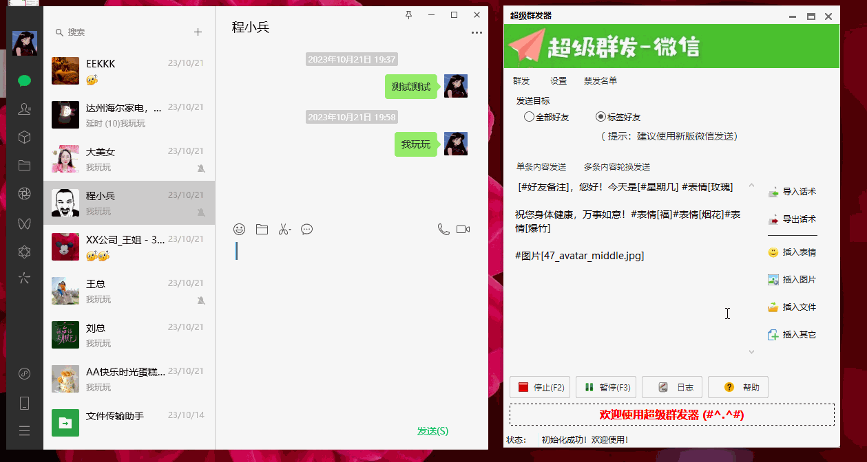 一款Windows微信群发助手,不动内存,纯物理模拟操作,纯净绿色无封号风险,并且支持只发特定标签好友。