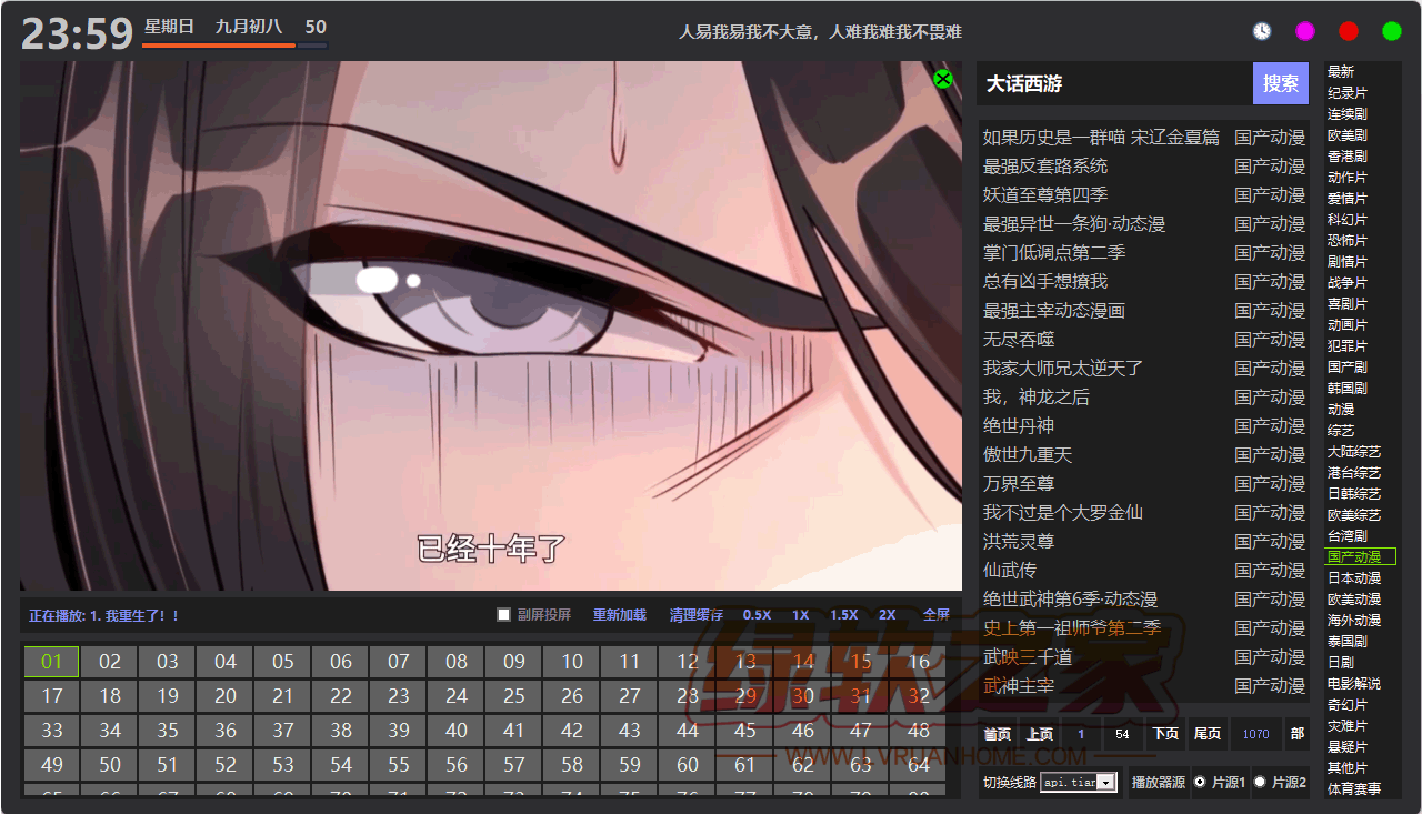 所以搞了个半屏模式, 画面头部不变, 画面加大,右边分类变成剧集数,更方便点,操作上也更好, 快捷热键同样通用.