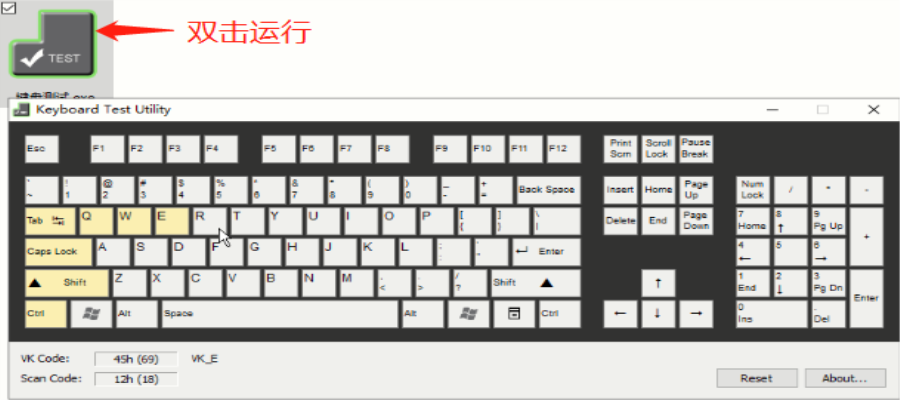 1、下面是测试键盘的软件运行后的截图,我们在电脑端打开软件后会弹出如下界面。