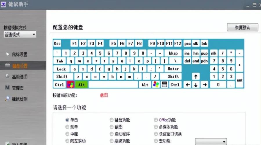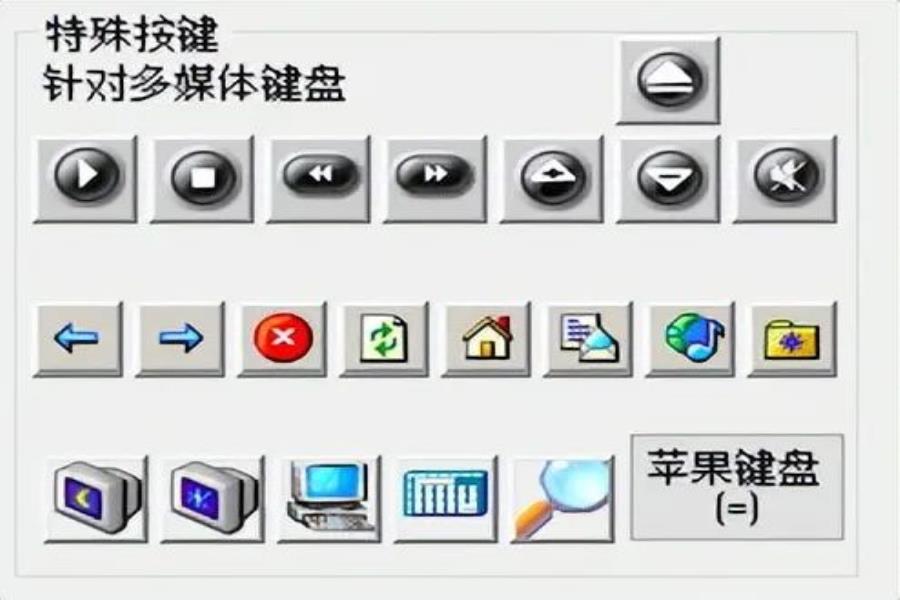 自定义键盘鼠标功能,可把键盘(任意键)改成鼠标,除此外我们还可以对一些特殊的功能按键进行自定义设置,比如播放、暂停、开关机等等按钮,如下图: