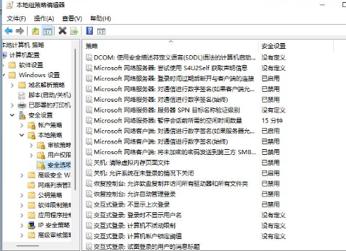 3、在“本地组策略编辑器”窗口中,依次打开“计算机配置”→“Windows设置”→“安全设置”→“本地策略”→“安全选项”。