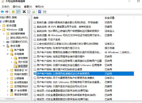 4、在“安全选项”中,找到“用户账户控制:以管理员批准模式运行所有管理员”。