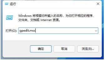 2、在运行对话框中输入“gpedit.msc”,然后单击“确定”以打开本地组策略编辑器。