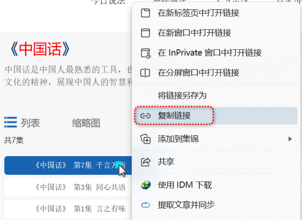 三、在想要下载的标题上点右键,选择“复制链接”。