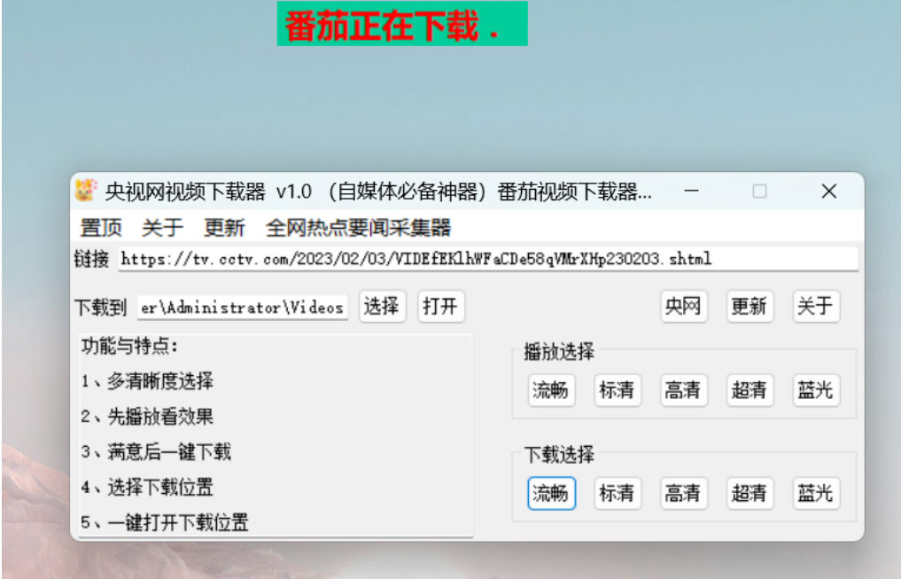 央视频的很多资料用于教学是很不错的,但是限于网络,在线播放不如下载下来更为方便。之前我们推荐过使用猫抓下载在线音频和视频,但是后来,央视频加密,下载到的视频是花屏,根本看不了。今天我们推荐一个专门的下载工具,它可以下载单集视频,可以选择多种清晰度下载。下面就来看一看如何下载吧?