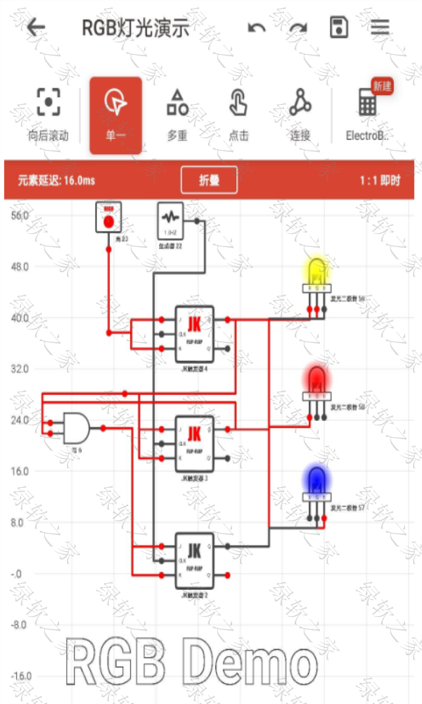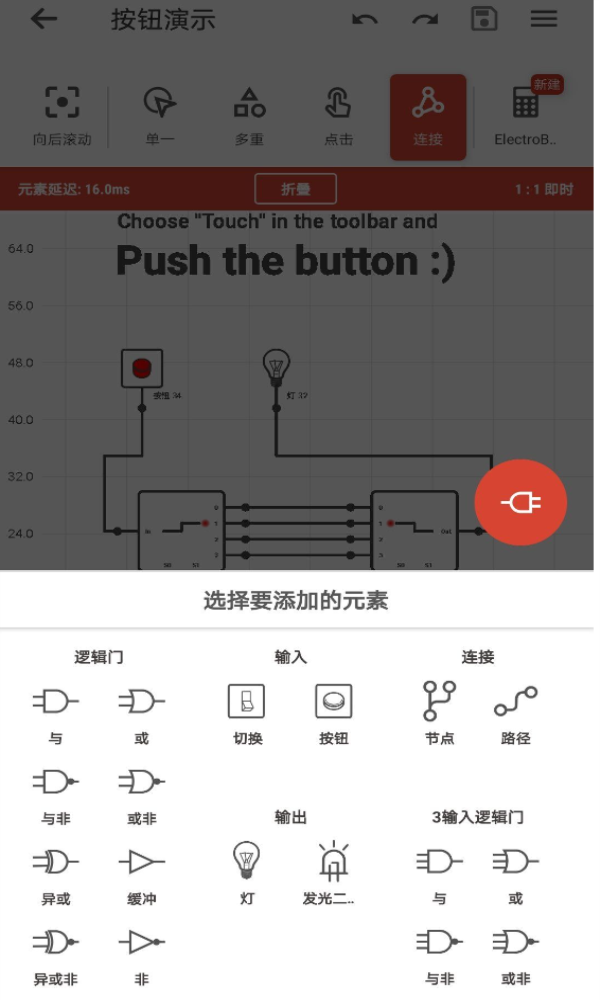 这个应用程序让你有更多的选择,你可以导入导出你的项目,查看教程和使用技巧,调整网格设置和多选模式,嵌入其他电路,使用时序图PRO分析电路,还可以使用 UNDO、REDO、CUT、COPY、PASTE 等功能,让你的编辑更加灵活。