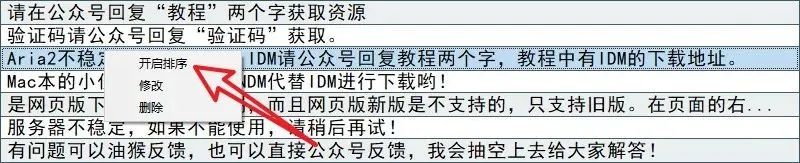 而对于经常用的回复语,我们也可以进行排序,直接右键,【开启排序】,然后拖拉语句,排好了再【结束排序】即可。