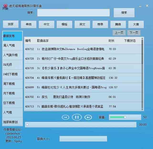 正文虚无320Kbps超高清音质DJ音乐盒v2023.6.25绿软之家 V管理员/2023-06-27/37阅读/0评论0627文章最后更新时间2026年03月03日,若文章内容或图片失效,请留言反馈! 歌曲下载目录默认为软件所在目录最好请用管理员身份运行双击播放列表可以在线播放,选中需要播放或者下载的歌曲鼠标右键呼出菜单选择对应的选项支持在线播放和批量下载虚无超高清音质DJ音乐盒v2023.6.25注意:下载歌曲的时候要一首一首下载,如果一下子点击多首下载,音乐会下载出错。试听了好听再一首一首下载。1 如果您喜欢本站,点击这儿捐赠本站,感谢支持2 可能会帮助到你: 使用帮助 | 报毒说明 | 侵权删除 | 联系我们; 3 修改版本安卓及电脑软件,加群提示为修改者自留,非本站信息,注意鉴别;4 本网站部分资源来源于网络,仅供大家学习与参考,请于下载后24小时内删除;5 若作商业用途,请联系原作者授权,若本站侵犯了您的权益请联系站长进行删除处理;