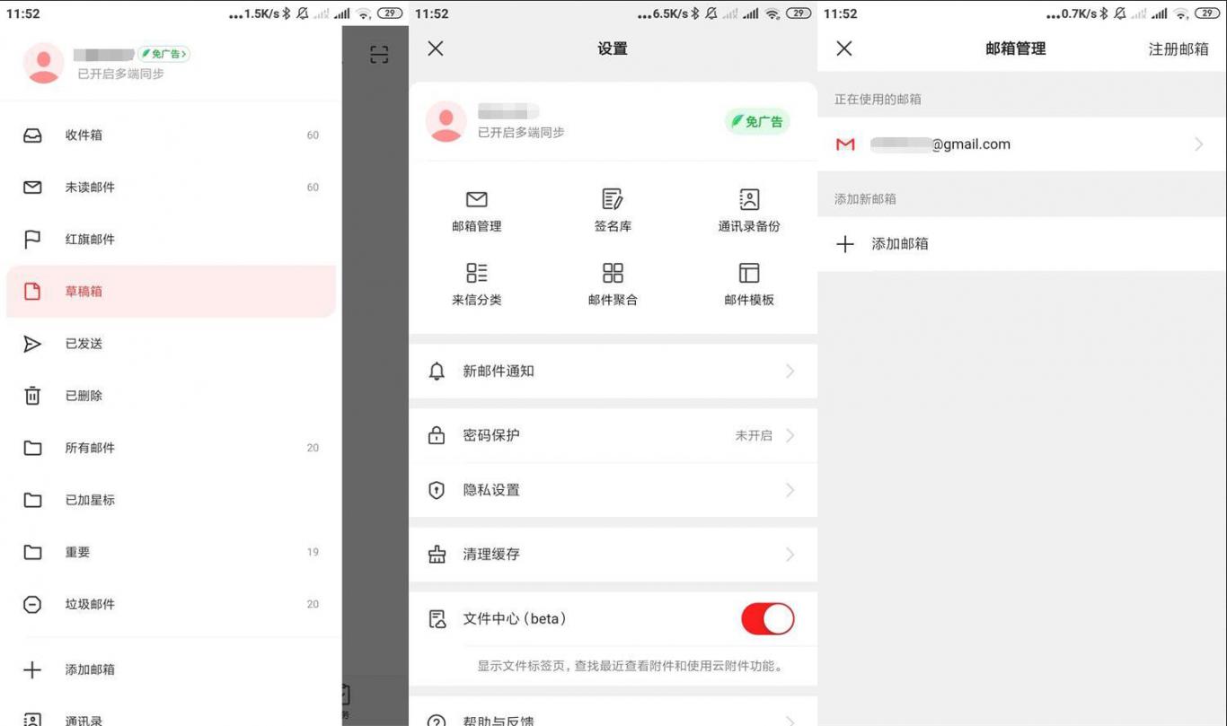 网易邮箱大师手机版,可以直连谷歌邮箱Gmail的邮箱客户端,支持一个大师账号管理所有邮箱客户端;支持一键添加所有邮箱:163、126、QQ邮箱、Gmail、Hotmail、新浪邮箱、所有企业邮箱和高校邮箱。