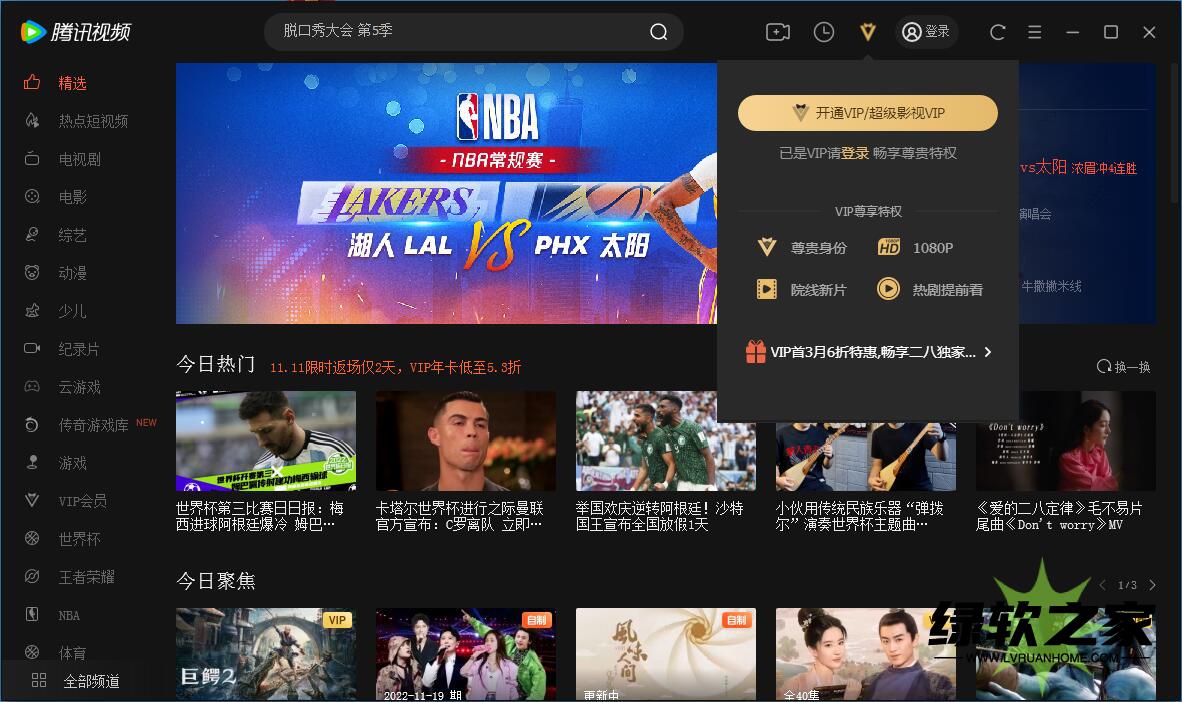 腾讯视频PC版,免费畅享非标准蓝光视频,支持极清4K画质,沉浸式无框播放器,三倍流畅播放,界面交互不错。腾讯视频,拥有海量正版高清影视内容,大量独播英美剧、独播NBA版权、热门赛事、短视频频道。
