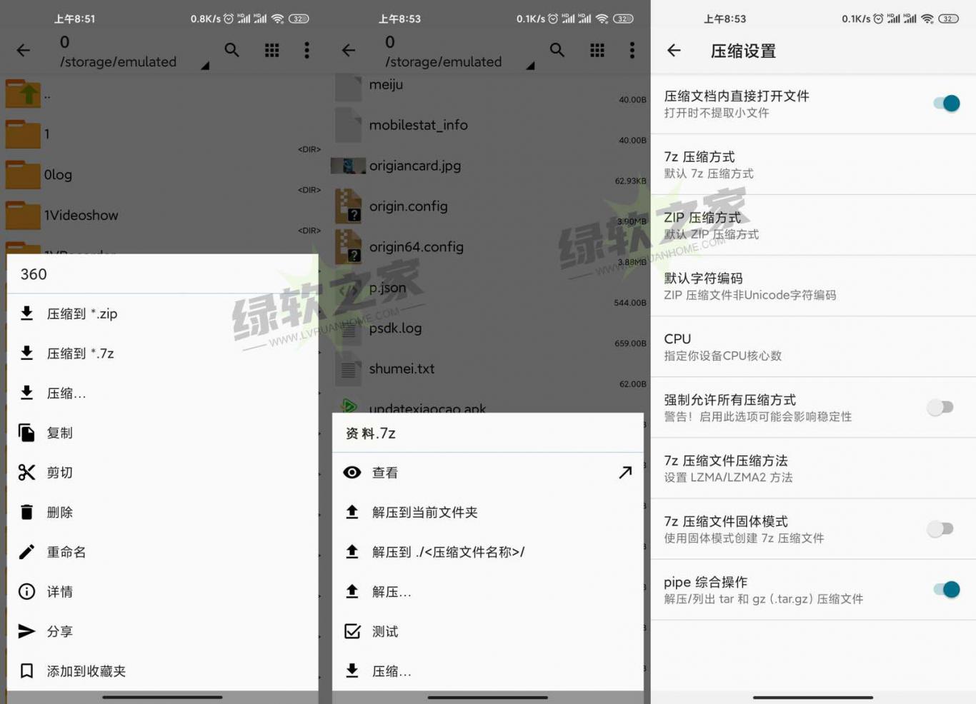 查看以下格式压缩文件:7z,ZIPRAR,BZIP2,GZIPXZ,ISO,Tar,ARJ,CAB,LZH,LZMA,XAR,LZIP;