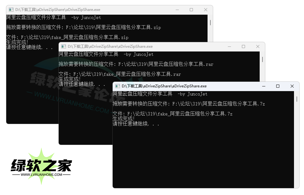 使用方法:拖放需要转换的压缩文件,然后后回车即可。效果可以看本篇文章的阿里云盘分享。