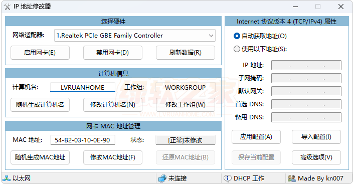 IP 地址修改器是由 kn007 大佬编写的一个小工具,如其名,可以方便的进行IP地址,网卡MAC等修改,支持多网卡,并且支持管理导入多份配置。