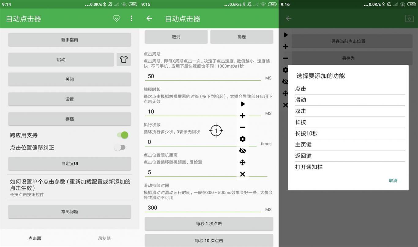 正文安卓自动点击器v2.0.12.18绿化版绿软之家 V管理员/2023-08-16/34阅读/0评论0816文章最后更新时间2026年03月03日,若文章内容或图片失效,请留言反馈! 软件介绍这是一款类似于按键精灵的软件,帮你自动点击屏幕,无需ROOT权限。可以方便添加点击位置,设置点击速度。只支持Android7.0及以上系统,低版本系统会提示类似“安装包解析错误”等提示。软件截图软件下载自动点击器v2.0.12.18.apk1 如果您喜欢本站,点击这儿捐赠本站,感谢支持2 可能会帮助到你: 使用帮助 | 报毒说明 | 侵权删除 | 联系我们; 3 修改版本安卓及电脑软件,加群提示为修改者自留,非本站信息,注意鉴别;4 本网站部分资源来源于网络,仅供大家学习与参考,请于下载后24小时内删除;5 若作商业用途,请联系原作者授权,若本站侵犯了您的权益请联系站长进行删除处理;