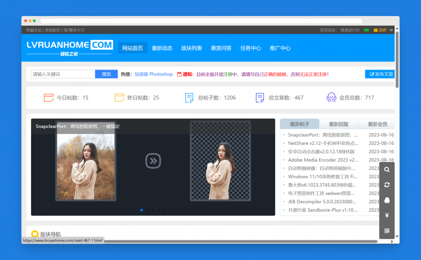 有时候需要上传屏幕截图,但是又觉得截图太过普通,如果经过美化,就会精美很多。比如绿软之家的首页截图经过处理后,就是下面这个样子: