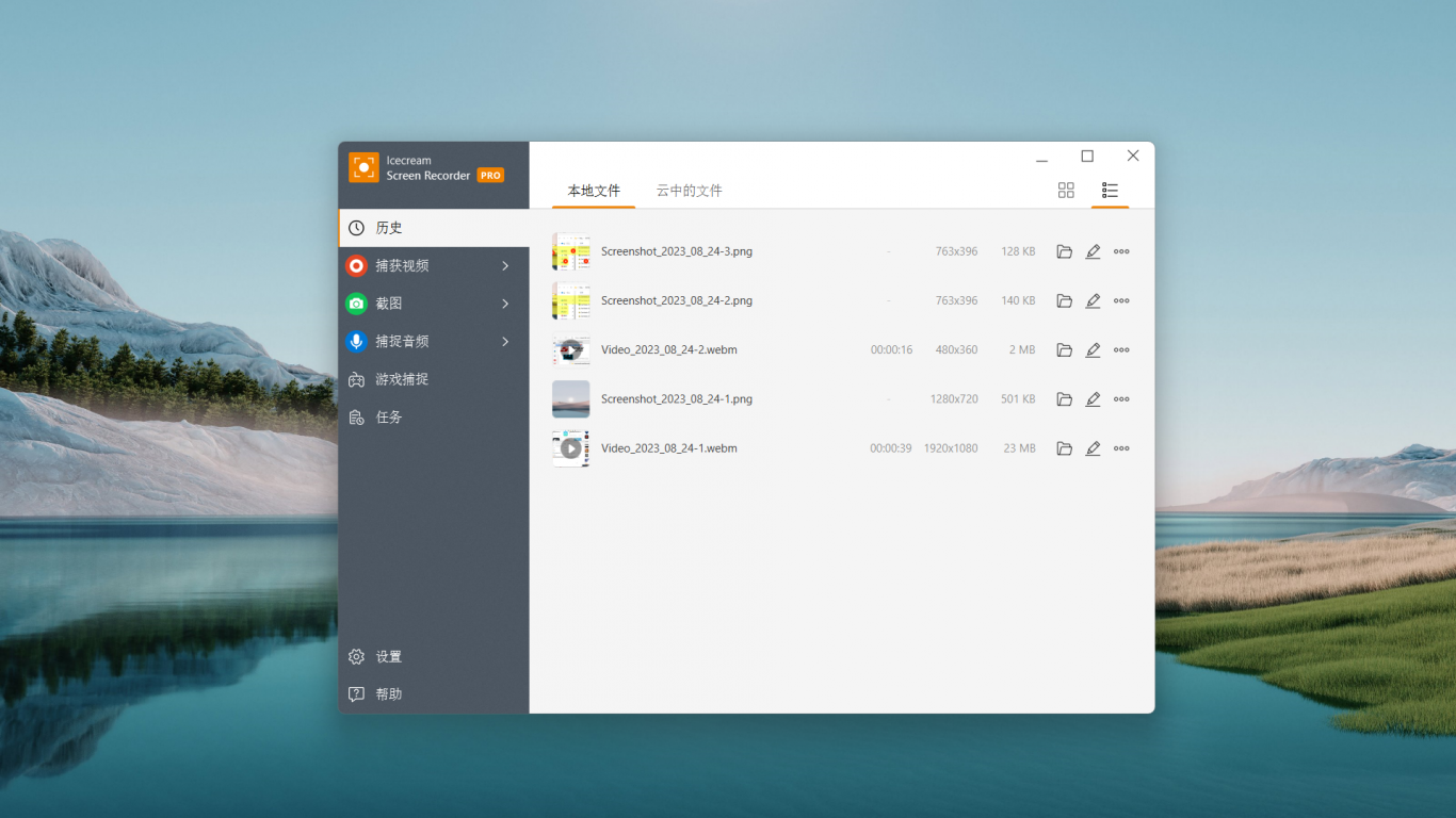 IcecreamScreenRecorder界面简洁,可以录屏(+摄像头)、截图录音,也能抓取游戏画面。录屏时可以使用屏幕画笔、放大画面。录音时可以同时录制系统音频和麦克风。