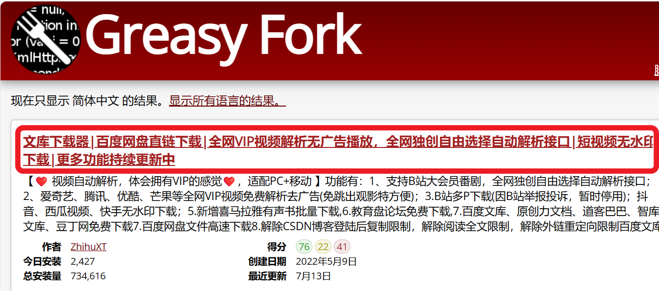 2.我们选择第一个脚本(相关度最高),点击进入脚本安装页面。