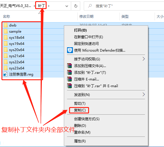 6、打开下载并解压的文件夹,复制补丁文件夹内的全部文件。