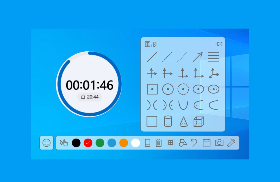 Ink Canvas是一个很好用的屏幕画笔工具,它有一个低调的笑脸图标,点击后就会打开画笔进行屏幕标注。软件可以识别墨迹,将随手画的图形识别成规范图形,此外软件还内置了丰富的数学图形,方便老师随时调用。作为教学工具,软件还有随机点名、倒计时等工具。还能保存圈画的墨迹,并能动态回放,这在某些教学场合特别有用。该画笔可以跟随PPT放映展开工具条,墨迹和页面绑定且独立保存,比PPT自带的墨迹还要好用。