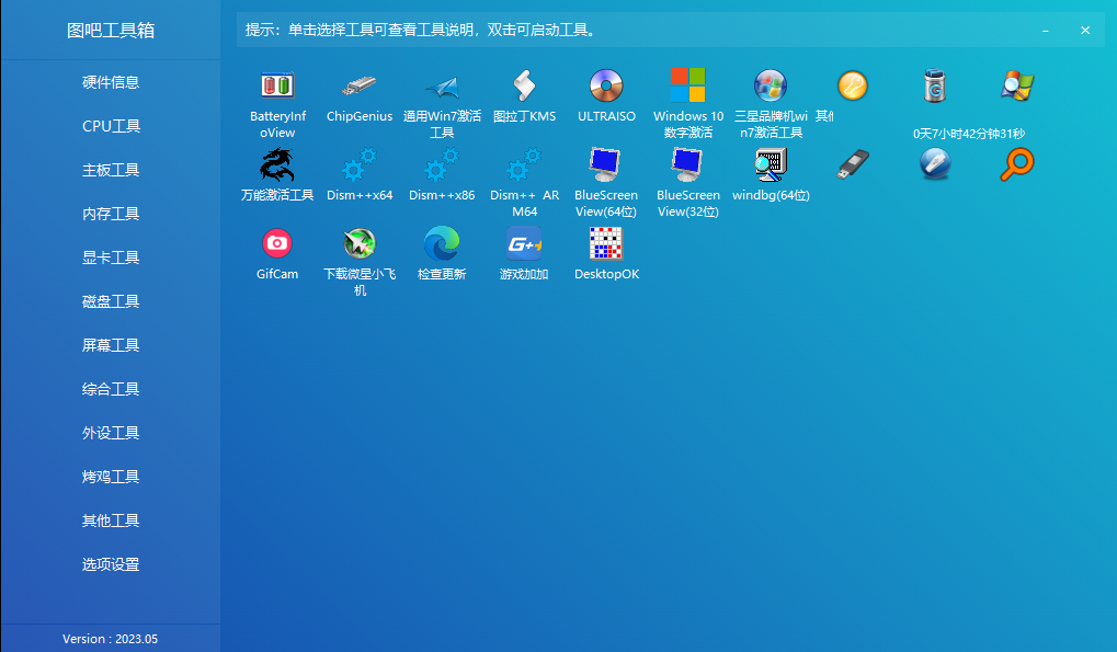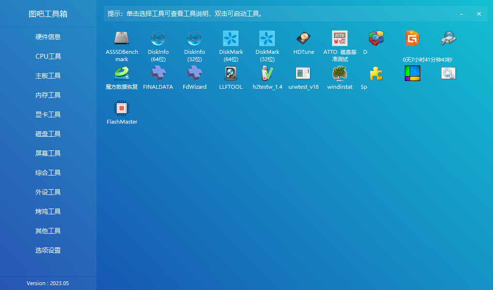 图吧工具箱是一款是开源、免费、绿色、纯净的硬件检测工具合集,专为所有计算机硬件极客、DIY爱好者、各路大神及小白制作。包含各种常用的系统优化和硬件工具,各种硬件检测、评分、测试工具,常见工具均有收集。可以查看电脑的基本硬件信息,比如处理器、内存、主板等所有的电脑硬件信息,可以帮助用户全面了解电脑的硬件信息和系统信息,还有内存工具,硬盘工具、显卡工具,帮助你检测硬盘,数据恢复,温度监控等。