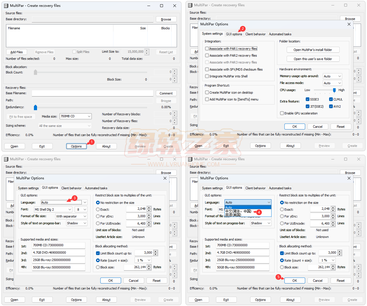 您可以将该实用程序与 PAR1、PAR2、SFV 或 MD5 文件相关联,将其功能集成到 Shell 中,设置块大小限制,调整块分配方法设置,设置 CPU 使用百分比并调整许多其他值。