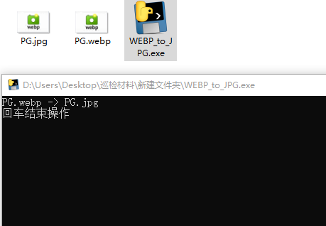 最后打包了EXE文件(要转换的.webp格式的图片和转换软件在同一目录下),双击软件自动运行;