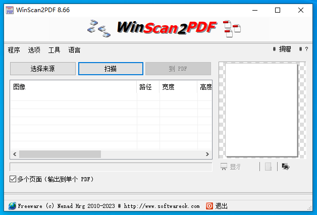 允许您扫描文档并使用任何已安装的扫描仪将其作为PDF保存在计算机上。