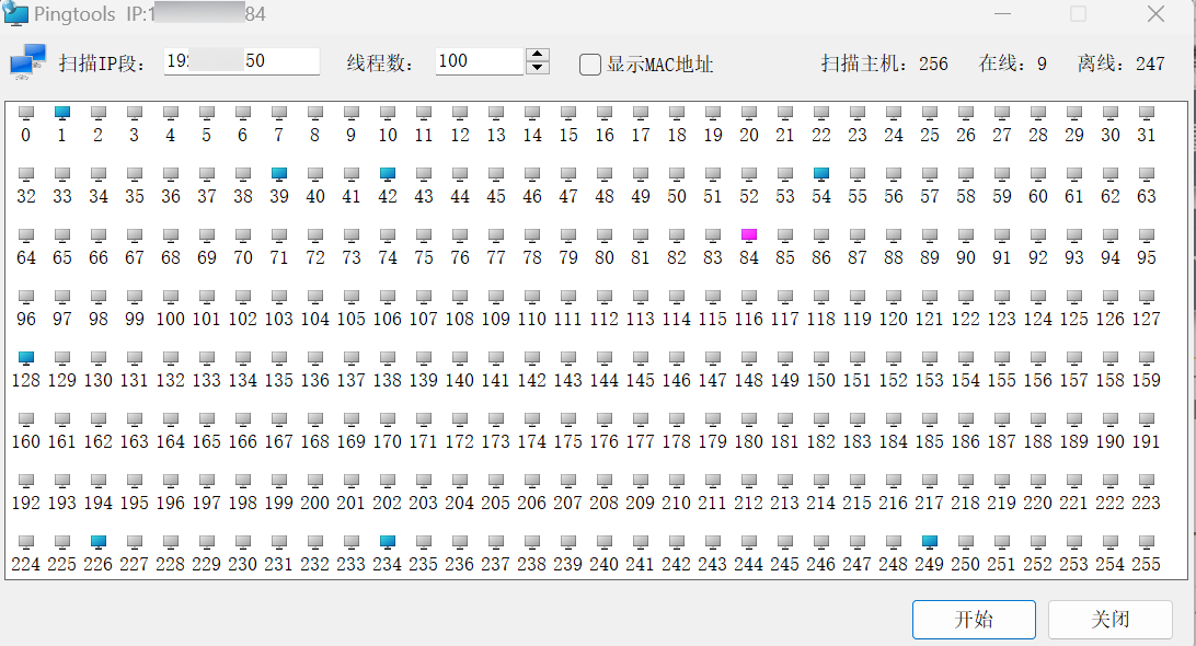 没有用的IP是灰色的,有连局域网的IP是有颜色标注。