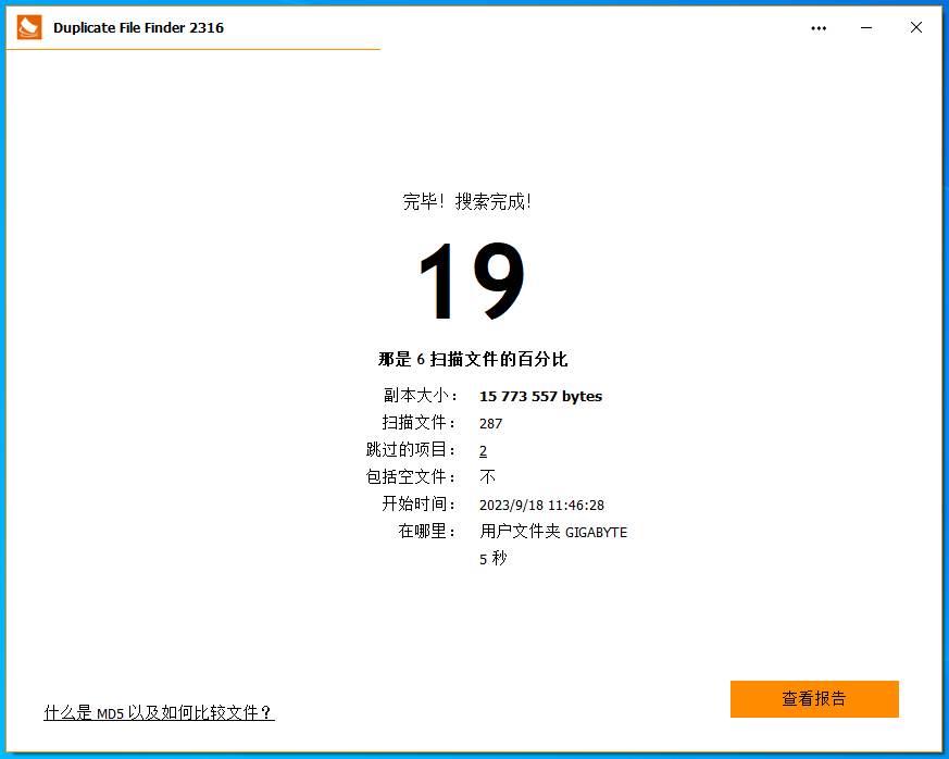 我们的应用程序将深入分析所选文件夹的内容以查找重复项。只需几秒钟。