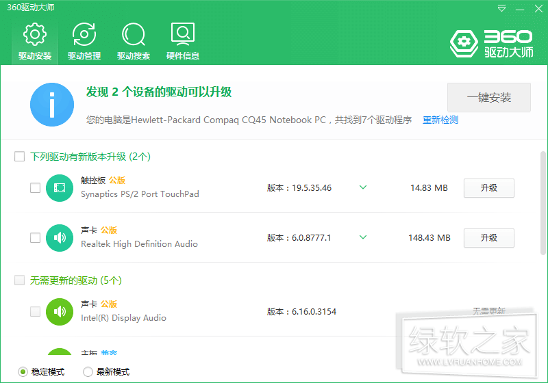 360驱动大师,驱动安装更新软件,百万级的驱动库,驱动安装和升级一键化,无需手动操作;首创驱动体检技术,驱动精确识别匹配;支持无人值守安装驱动,启动参数-q;首创一键智能识别假显卡、假硬件。