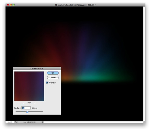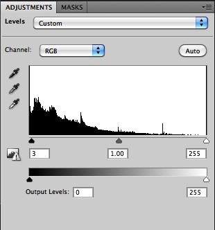 3、我对图像应用了高斯模糊,半径为15像素。 4、更改了一点色阶,改变黑色输入为3。