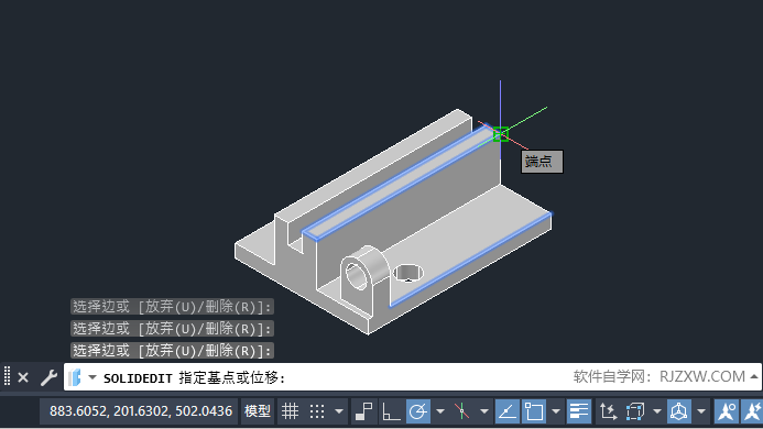 4、然后选择实体的端点,如下图: