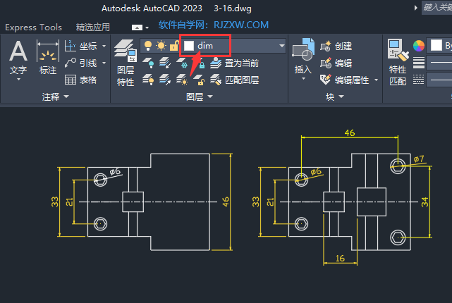 3、这样就把DIM设置为当前图层。