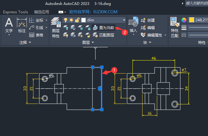 2、选择标注图层,点击置为当前。