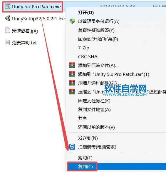 正文Unity5.0软件安装教程绿软之家 V管理员/2023-10-08/38阅读/0评论1008文章最后更新时间2026年03月03日,若文章内容或图片失效,请留言反馈! 1、选中下载的压缩包,然后鼠标右键选择解压到"Unity 5.0"(没有解压选项点这里)。 2、打开刚刚解压的"Unity5.0"文件夹,鼠标右键点击“UnitySetup32-5.0.2f1”选择“以管理员身份运行”。 3、点击“Next”。 4、点击“I Agree”。 5、点击“Next”。 6、点击“Browse…”即可选择安装路径(建议和教程中的保持一致,安装路径中不能有中文),点击“Install”。 7、软件安装需要一些时间,请耐心等待。 8、取消勾选“Run Unity 5.0.2f1”,点击“Finish”。 9、打开之前解压的"Unity5.0"文件夹,鼠标右键点击“Unity 5.x Pro Patch”选择“复制”。 10、在桌面上找到“Unity 5.0”快捷图标,鼠标右键选择“打开文件所在的位置”。 11、在打开的文件夹空白处鼠标右键选择“粘贴”。 12、找到复制过来的“Unity 5.x Pro Patch”文件,鼠标右键点击“以管理员身份运行”。 13、点击“Browse”。 14、选择软件的安装路径(第6步设置的路径),选择“Editor”文件夹后,点击“确定”。 15、点击“PATCH”。 16、点击“确定”。 17、点击右上角“X”关闭注册机。 18、双击打开桌面上“Unity5.0”快捷图标。 19、安装完成。 1 如果您喜欢本站,点击这儿捐赠本站,感谢支持2 可能会帮助到你: 使用帮助 | 报毒说明 | 侵权删除 | 联系我们; 3 修改版本安卓及电脑软件,加群提示为修改者自留,非本站信息,注意鉴别;4 本网站部分资源来源于网络,仅供大家学习与参考,请于下载后24小时内删除;5 若作商业用途,请联系原作者授权,若本站侵犯了您的权益请联系站长进行删除处理;