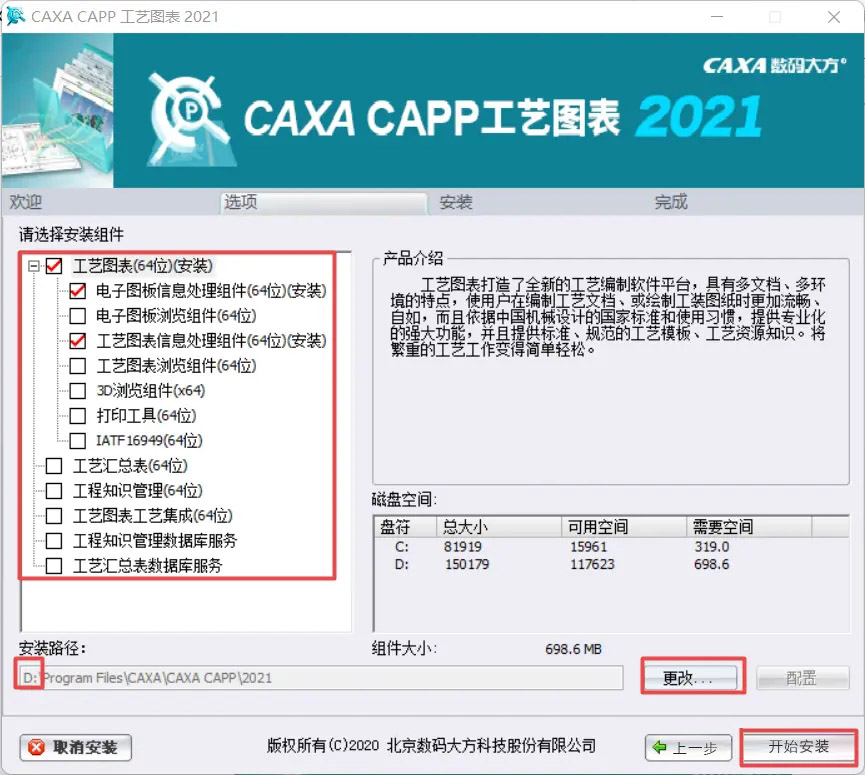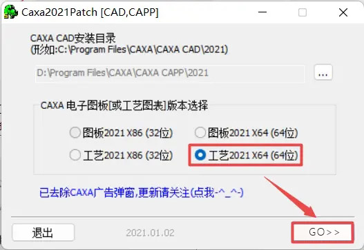 正文CAXA工艺图表2021软件安装教程绿软之家 V管理员/2023-10-08/26阅读/0评论1008文章最后更新时间2026年03月03日,若文章内容或图片失效,请留言反馈! 1、选中下载的压缩包,然后鼠标右键选择解压到"CAXA工艺图表2021"(没有解压选项点这里)2、打开刚刚解压的文件夹,找到并选中“setup.exe”,鼠标右键点击“以管理员身份运行”3、根据电脑操作系统位数选择“32位”(32位操作系统)或“64位”(64位操作系统),点击“确定”(“操作系统位数”查看方法点这里)4、点击“下一步”5、勾选“工艺图表”,点击“更改”可以选择软件安装路径,建议和教程中的保持一致,本例安装到D盘(将路径地址中的首字符C改为D表示安装到D盘,或者可以在其它磁盘里创建一个新的文件夹,安装路径不要出现中文),勾选其他需要安装的组件,点击“开始安装”6、软件正在安装,请耐心等待7、点击“安装完成”8、点击“安装完成”9、返回之前解压的“CAXA工艺图表2021”文件夹,选中“Crack.rar”文件,鼠标右键点击“解压到当前文件夹”温馨提示:关闭“所有杀毒软件(部分电脑自带“迈克菲”也要关闭)、防火墙、Win10系统的Windows Defender”,否则程序可能无法运行或者被删除10、鼠标右键点击“Caxa2021 Patch[2021.01.02].exe”选择“以管理员身份运行”11、根据电脑的操作系统位数选择“工艺2021 X86”(32位操作系统)或"工艺2021 x64"(64位操作系统),点击"GO>>"12、点击”是“13、安装完成.1 如果您喜欢本站,点击这儿捐赠本站,感谢支持2 可能会帮助到你: 使用帮助 | 报毒说明 | 侵权删除 | 联系我们; 3 修改版本安卓及电脑软件,加群提示为修改者自留,非本站信息,注意鉴别;4 本网站部分资源来源于网络,仅供大家学习与参考,请于下载后24小时内删除;5 若作商业用途,请联系原作者授权,若本站侵犯了您的权益请联系站长进行删除处理;