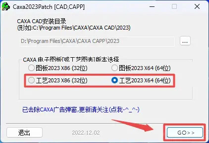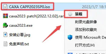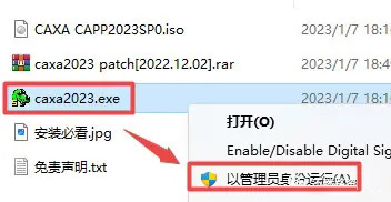 正文CAXA工艺图表软件2023版本安装教程绿软之家 V管理员/2023-10-08/26阅读/0评论1008文章最后更新时间2026年03月03日,若文章内容或图片失效,请留言反馈! 1、选中下载的压缩包,然后鼠标右键选择解压到“CAXA工艺图表2023““(没有解压选项点这里),温馨提示:win11系统需先点击“显示更多选项” 2、打开刚刚解压的文件夹,鼠标右键点击“CAXA CAPP2023SP0.iso”文件,选择“装载”(如果没有“装载”选项的可以右键选择“打开方式—Windows资源管理器”打开,win7系统请右键解压文件)。 3、鼠标右键点击“Setup.exe”选择“以管理员身份运行”。 4、根据电脑操作系统位数选择“32位”(32位操作系统)或“64位”(64位操作系统),点击“确定”(“操作系统位数”查看方法点这里)。 5、点击“下一步”。 6、勾选“工艺图表”,点击“更改”可以选择软件安装路径,建议和教程中的保持一致,本例安装到D盘(将路径地址中的首字符C改为D表示安装到D盘,或者可以在其它磁盘里创建一个新的文件夹,安装路径不要出现中文),勾选其他需要安装的组件,点击“开始安装”。 7、软件正在安装,请耐心等待。 8、点击“安装完成”。 9、返回之前解压的“CAXA工艺图表2023”文件夹,鼠标右键点击“caxa2023.exe”选择“以管理员身份运行”。温馨提示:若打开没有“caxa2023.exe”注册机,说明被电脑杀毒软件隔离了,请关闭电脑上的“杀毒软件、防火墙”,Win10系统还需关闭“Windows Defender”(部分电脑自带“迈克菲”也要关闭),重新解压即可。 10、勾选安装的版本“工艺2023 X86”(32位操作系统)或“工艺2023 x64“(64位操作系统),本例选择“工艺2023 x64”,点击"GO>>"。 11、点击”是“。 12、安装完成.界面如下: 13、使用软件,双击图标即可。 14、温馨提示:安装完成后,可以通过鼠标右键选择“弹出”退出装载了的iso文件。 1 如果您喜欢本站,点击这儿捐赠本站,感谢支持2 可能会帮助到你: 使用帮助 | 报毒说明 | 侵权删除 | 联系我们; 3 修改版本安卓及电脑软件,加群提示为修改者自留,非本站信息,注意鉴别;4 本网站部分资源来源于网络,仅供大家学习与参考,请于下载后24小时内删除;5 若作商业用途,请联系原作者授权,若本站侵犯了您的权益请联系站长进行删除处理;