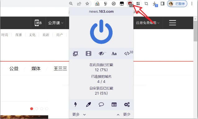 去广诰的插件其实挺多的,但我最喜欢的还数这款u*Block Origin插件。其能以高效的网络请求过滤工具,以占用极低的内存和CPU,实现拦截网页广告的目的。插件安装以后,可以把插件的图标钉在浏览器上,这样我们可以看到插件拦截的广诰的次数。