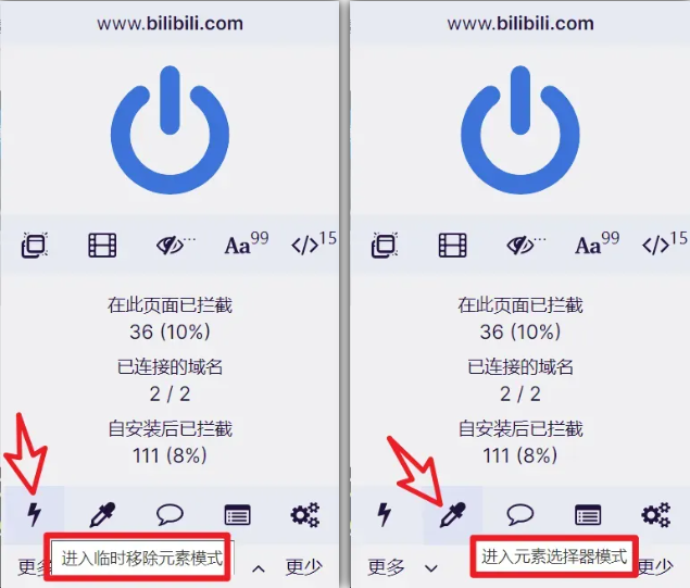 这款插件除了可以拦截广诰外,还有一个移除元素模式的功能,其中有两种模式,一种是【临时移除模式】,这个模式下移除的元素在网页刷新后会重新加载。而【元素选择器模式】是过滤掉这部分元素,刷新后也不能重新加载。