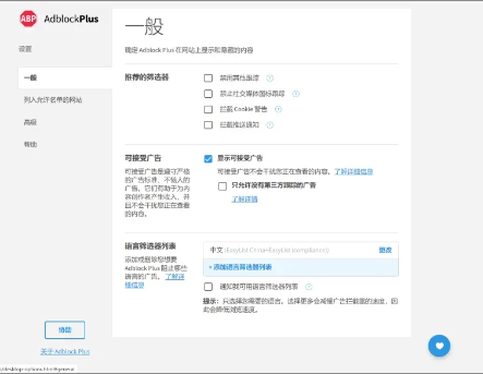 另外,在插件的设置中,我们可以设置可接受的广告,也可以设置过滤规则,大家自己去体验!