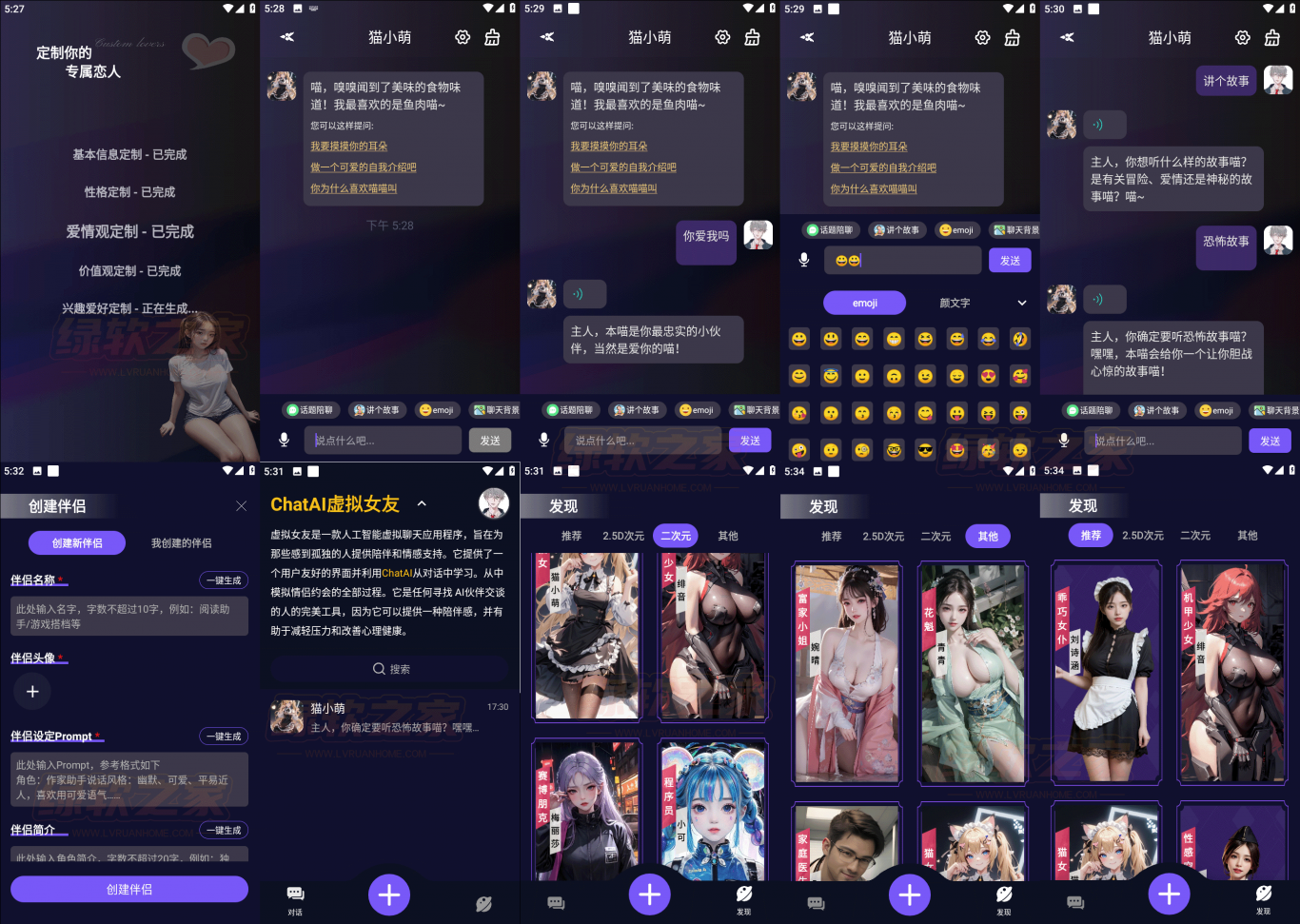 对了,还可以切换聊天背景,发送表情包,还可以设置虚拟伴侣的声音